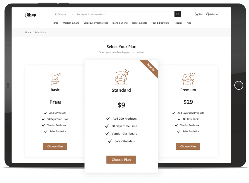 Wishopping offers versatile monetization options, including premium vendor memberships. Craft custom membership packages, tailoring duration and product limits, then sell them to your vendors for enhanced benefits.