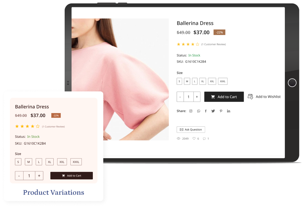 To enhance your product offerings, consider creating product variations, encompassing attributes like color, sizes and other variants. These customizable options empower customers to select their preferences effortlessly on the product details page during the purchase process.